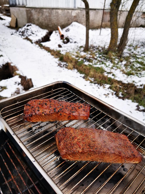 おっと、この寒いのに外で燻製とかしてるおバカさんはうちくらいかと思ってたけどいた(笑)