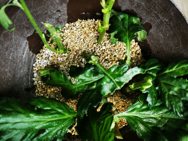茎を10cmくらいの長さに切ってバーミキュライトに挿しておくと根がでるそうです。