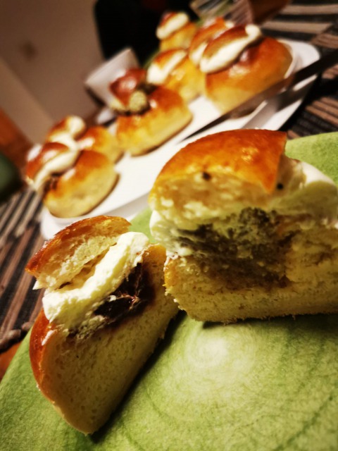この日、スウェーデンではセムラというカルダモン入りのパンにマンデルマッサ(アーモンドペースト)と生クリームがたっぷり入った菓子パンを食べます。