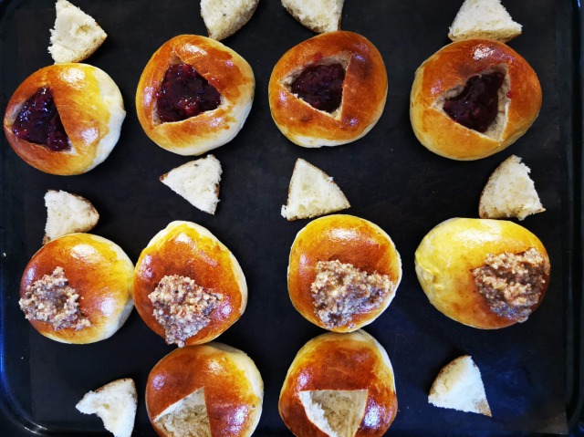 そして、ラスキアイスプッラにはラズベリージャムを入れます。