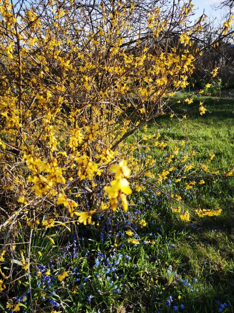 スキッラが咲き乱れ、ヒヤシンス、水仙もどんどん花を咲かせています。