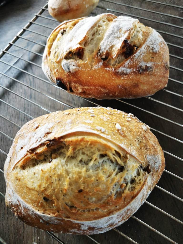 大きなパン(カンパーニュのような)はすぐいい感じにでき、定番にドライフルーツ入りを仲間入りさせるかどうか、悩みつつ配分を試しています。