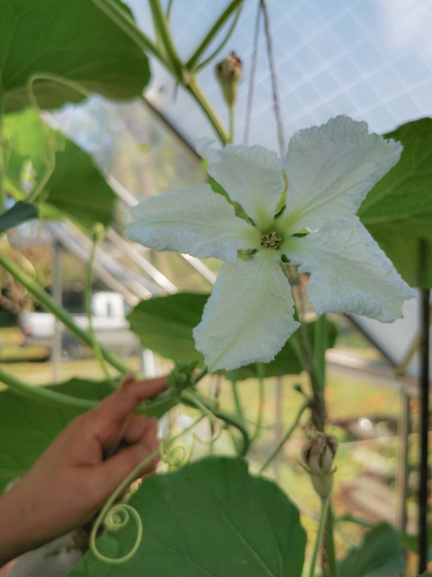 来年は温室の中にツルがいい感じにつたうようにコントロールする柵のようなものを準備しようっと。