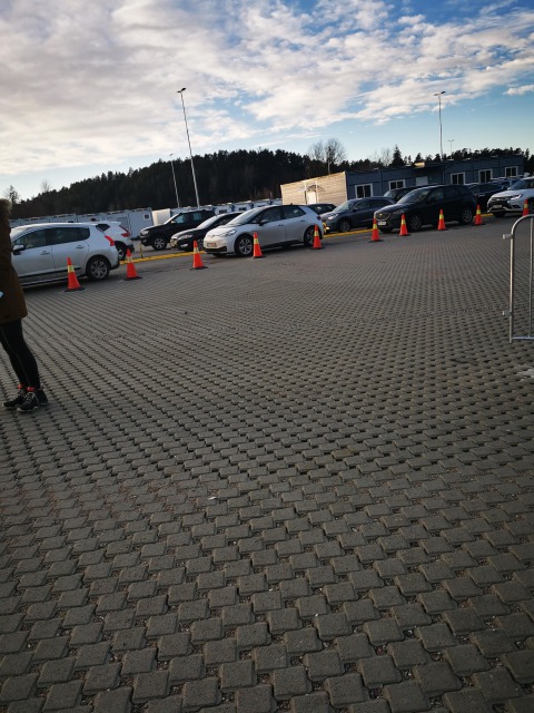国境で一度降ろされ、ノルウェーポリスによるID、ワクチンパス、入国申請のチェック。