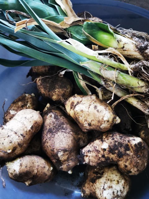 フンをまく前に土を掘っていたら菊芋がゴロゴロでてきました