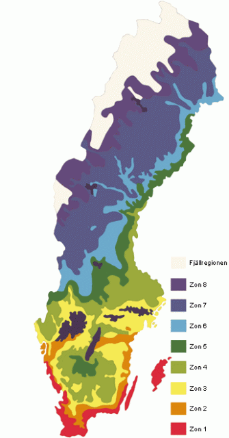 ゾーンは1~8に分かれていて、エーランド島は一番穏やかな気候のゾーン1