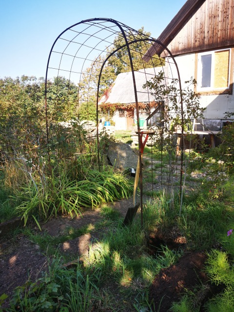 ということで、バラ&ブドウ用アーチの場所に植えました